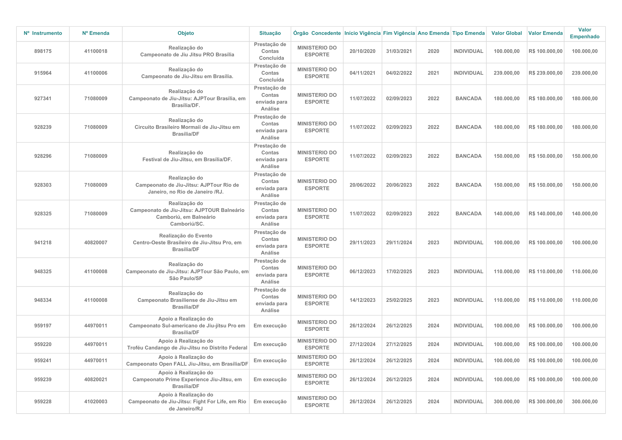 Os eventos realizados com parcerias públicas podem ser consultados de forma específica no Portal da Transparência Governo Federal.