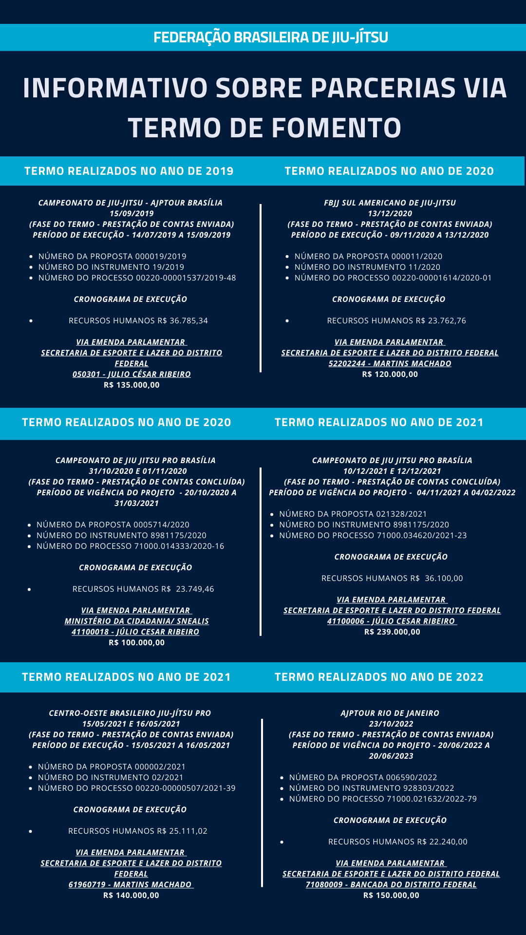 Os eventos realizados com parcerias públicas podem ser consultados de forma específica no Painel de Transparência Discricionária e Legais .